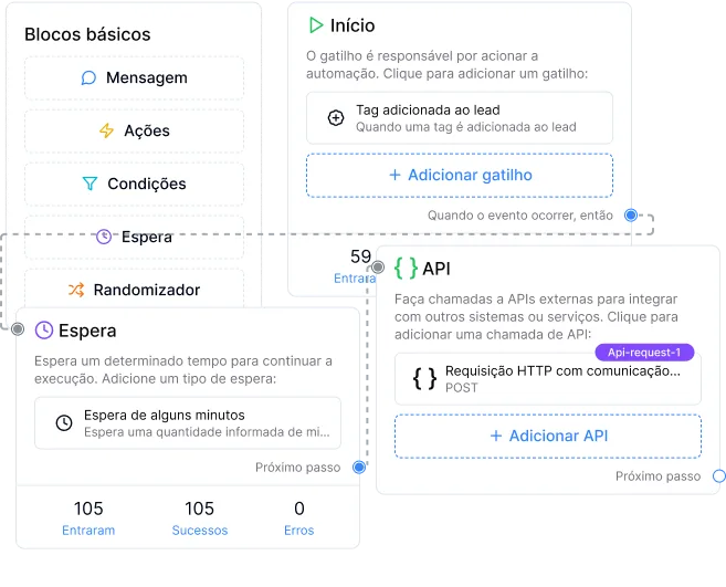 Sim. Você pode criar automações completas: mensagens, regras de negócio, distribuição de leads, agendamentos, e muito mais.